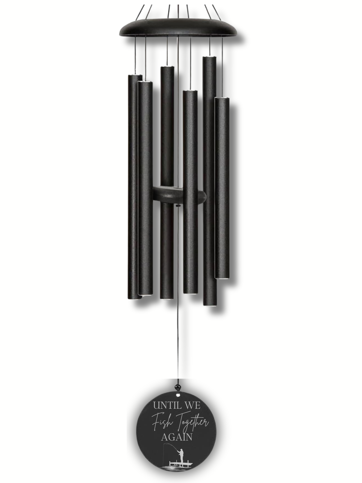This custom-engraved sympathy wind chime offers a heartfelt way to remember someone special. The windchime includes Until we FishTogether again. Crafted with durable, weather-resistant materials, it produces gentle, calming tones that bring peace and comfort in moments of grief. Each chime is personalized with your message—creating a lasting tribute to loved ones lost.